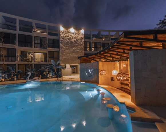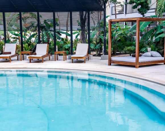 Consciente tu cuerpo, mente y sentidos en el SPA y Gimnasio. Tres piscinas en diferentes escenarios para que tomes un baño de sol o simplemente te relajes. Experimenta la sensación de la cultura milenaria Maya en el Cenote dentro de The Waves Tulum